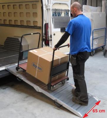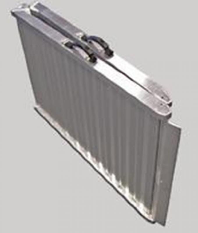 Opvouwbare rijplaat MET opstaande rand, antislipoppervlak en 2 handgrepen Belasting = 400 kg Afmetingen = buiten 0,65m / binnen 0,60m x 2,15m Gewicht = 19 kg